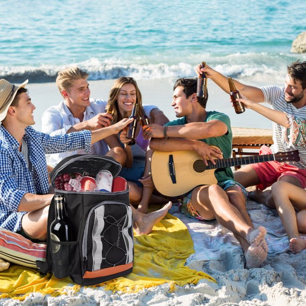 • Multi-Pockets & Spacious Backpack: Measures sizes in 11.8x7.48x16.54in, the cooler backpack is able to hold up to 36 Can(350ml). Constructed with a main compartment for fruits, cold beer and beverages, a front zipper pocket for your essential items, 2 side mesh pockets for water bottles and umbrella, and a top mesh pocket with insulated aluminum film for snacks and more.